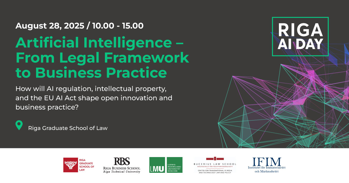 Riga Graduate School of Law and RTU Riga Business School, in collaboration with Ludwig Maximilian University Munich (LMU), Bucerius Law School Hamburg (BLS), and the Institute for Intellectual Property and Market Law at Stockholm University (IFIM), are organizing an international conference on the impact of artificial intelligence on legal frameworks, regulation, and business practices.